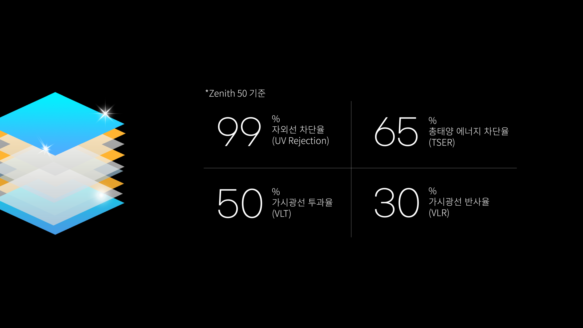 ์ดํ์์๋์ง์ฐจ๋จ์จ (TSER, Total Solar Energy Rejected)ํ๋น์ ๋จ์ํ ๋น์ด ์๋, ๊ฐ์๊ด์ ยท์์ธ์ ยท์ ์ธ์ ์ด ๋ณตํฉ์ ์ผ๋ก ํฌํจ๋ ์ด์๋์ง์ ๋๋ค. TSER์ ์ด ์ด ํ์์๋์ง ์ค ์ผ๋ง๋ ์ค๋ด ์ ์ ์ ๋ง์ ์ ์๋์ง๋ฅผ ๋ํ๋ด๋ ์ข ํฉ ์ฑ๋ฅ์งํ๋ก, ์ซ์๊ฐ ๋์์๋ก ๋์ฑ ๊ฐ๋ ฅํ ์ด์ฐจ๋จ ํจ๊ณผ๋ฅผ ๊ธฐ๋ํ ์ ์์ต๋๋ค. ์๋ฅผ ๋ค์ด, TSER 65%๋ ํ์์ด์ 65%๋ฅผ ๋ง์ ๋๋ฐฉ ์๋์ง ์ ๊ฐ๊ณผ ์พ์ ํ ์ค๋ด ์ ์ง์ ๊ธฐ์ฌํฉ๋๋ค.